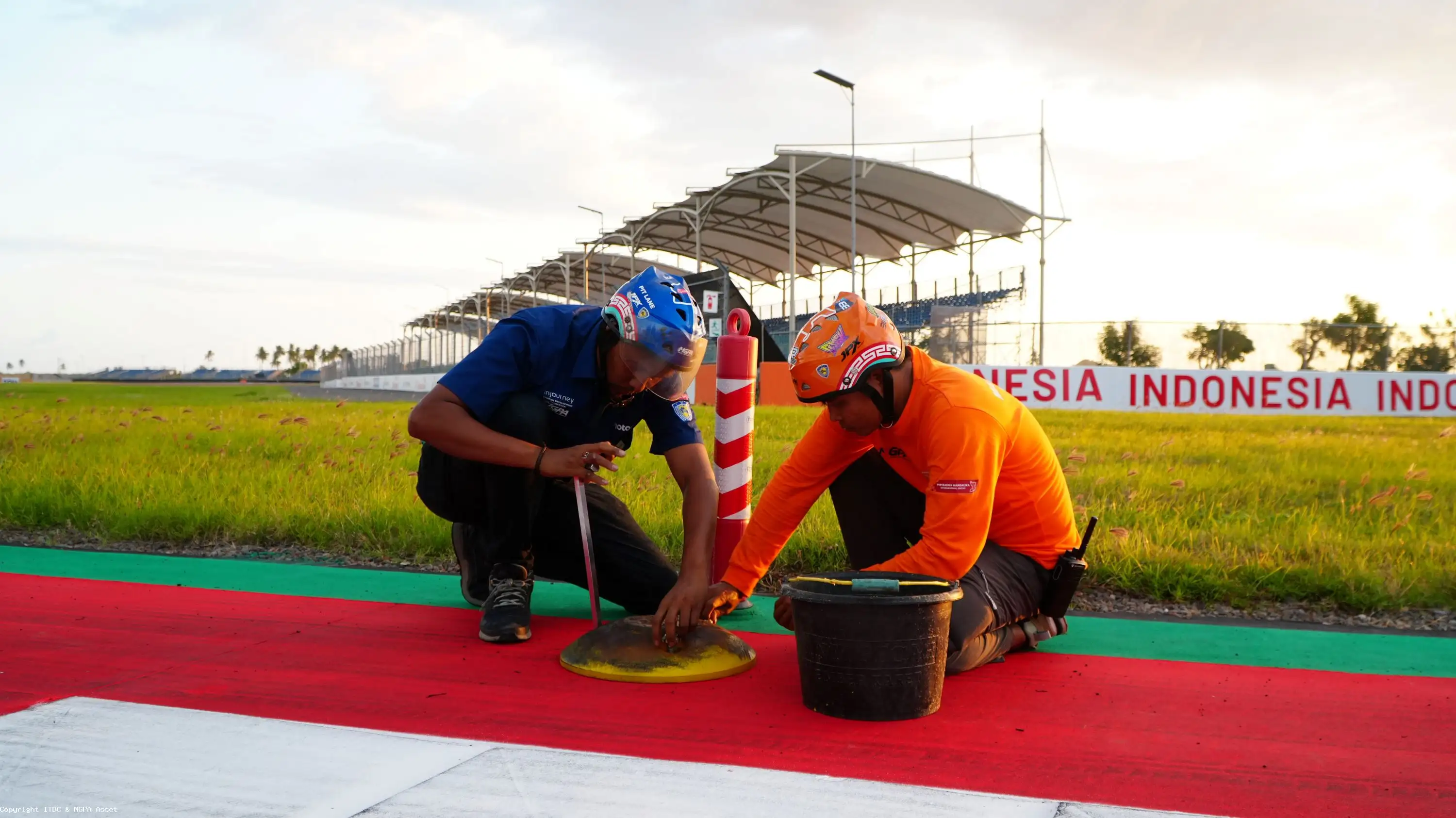 Proses konversi dari setup lintasan Pertamina Mandalika International Circuit dari balap roda dua ke balap roda empat dilakukan secara cepat oleh tim MGPA.