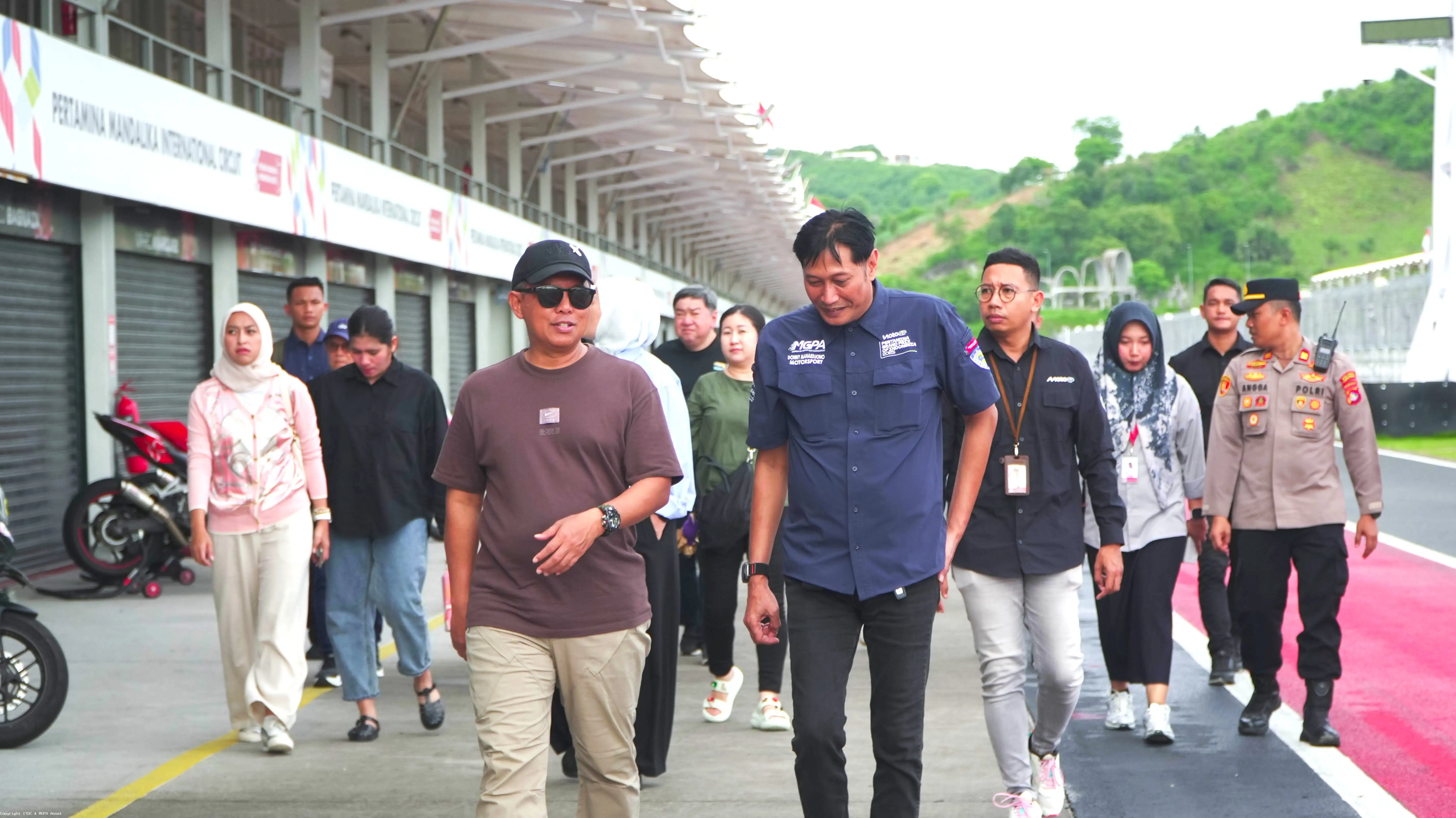 Rombongan kemudian diajak mengelilingi kawasan sirkuit untuk melihat secara langsung fasilitas utama yang dimiliki Pertamina Mandalika International Circuit, mulai dari lintasan balap, area paddock, hingga infrastruktur pendukung yang selama ini menjadi standar penyelenggaraan ajang motorsport kelas dunia.